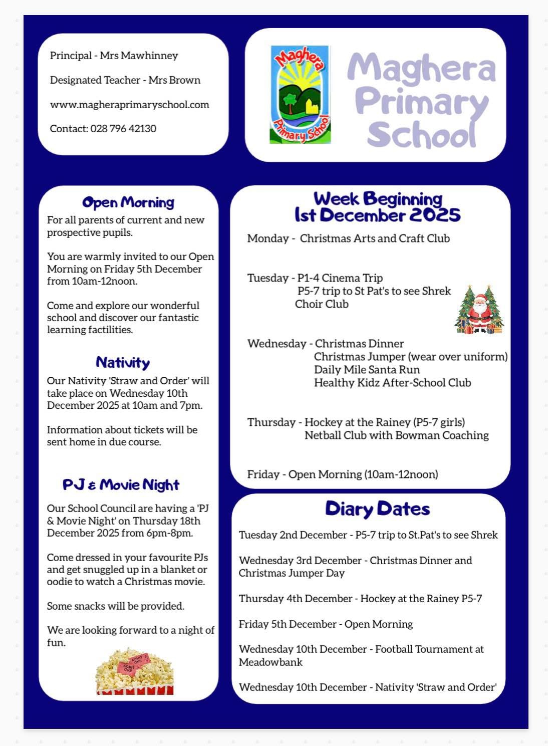 Maghera Primary School, 15 Station Road Maghera Co. Londondery BT46 5BS Tel/Fax: 028 796 42130